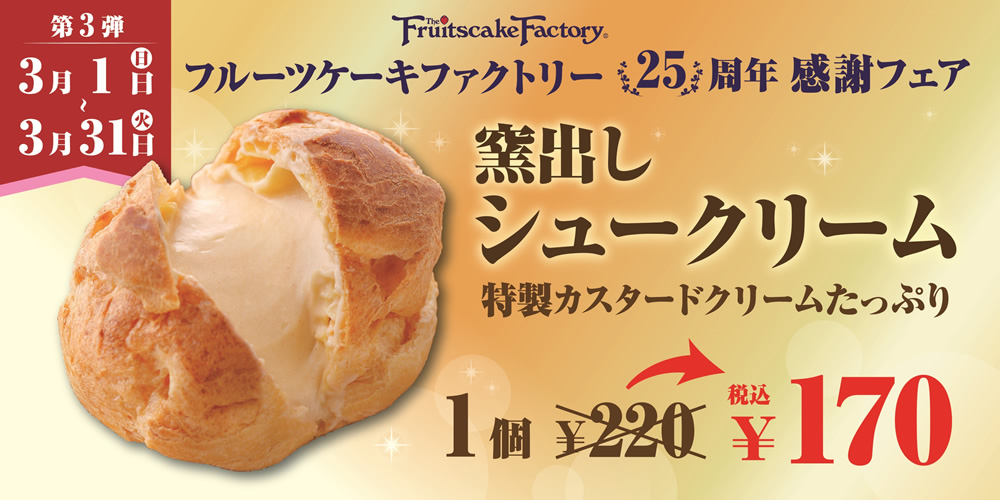 特製カスタードクリームたっぷりの『窯出しシュークリーム』が、