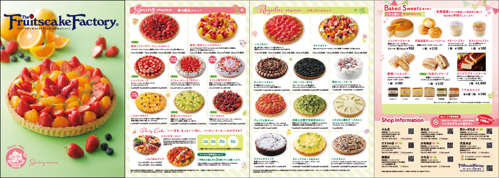 2026年の春メニュー、レギュラーメニュー、焼き菓子のメニューです。画像をクリックするとPDFで閲覧できます。(2.8M)